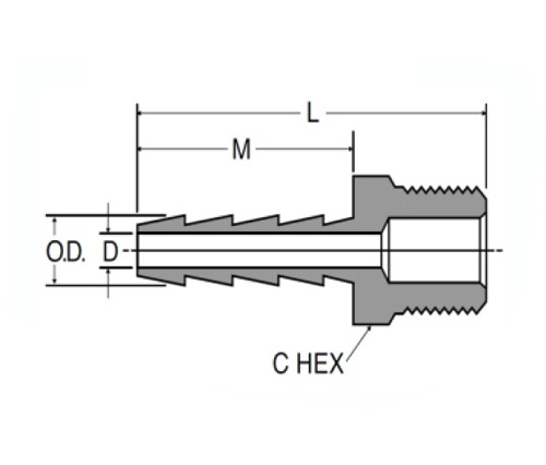 125 ống Barb to Male có cơ thể bằng đồng và vòng chữ O fluorocarbon. Nó có một đầu ống nam, các sợi thẳng NPT và một loại chỉ số số liệu. Sản phẩm này tương thích với ống cao su và ống GPH.
