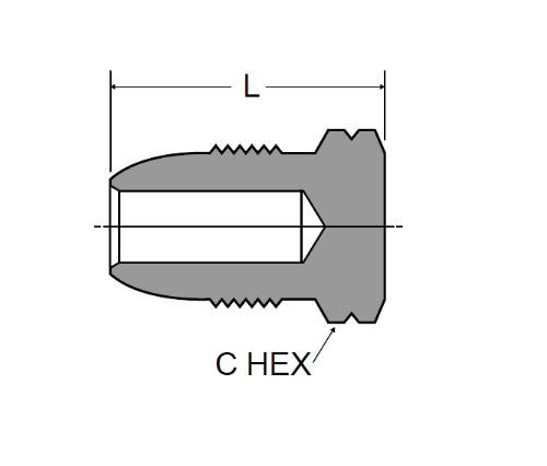 Nút mũi cứng nam. Được sử dụng để tạo kết nối trong các hệ thống khí LP. Sự phù hợp: Chủ đề Pol .880 - 14lh