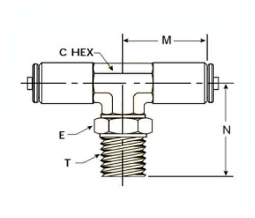 Các ống tee nhánh nam. Nó gặp D.O.T FMVSS571.106, SAE J2494 & SAE J2494-3. Ống tee chi nhánh dài 4 này được thiết kế cho các ứng dụng phanh và đi không khí, chẳng hạn như xe tăng không khí và đường không khí chính và phụ cho xe tải, xe kéo và xe máy.